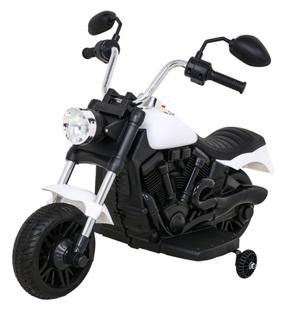 Motor Chopper V-Max na akumulator dla dzieci Biały + Melodie Klakson + Światło + Kółka pomocnicze