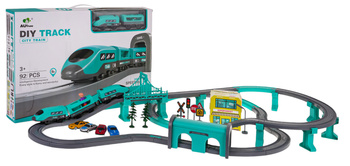 Duża Kolejka z torami dla dzieci 3+ Pociąg z wagonem + Pętla + Akcesoria 56 el.
