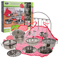 ( ilość produktów: 57 )Zestaw Metalowych Garnków dla dzieci 3+ Przybory Kuchenne + Fartuch + Akcesoria 13 el.