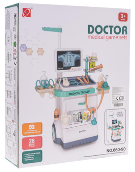 Zestaw lekarski dla dzieci 3+ Wózek + panel EKG 24 el. Kardiolog Dentysta Ortopeda Pielęgniarka