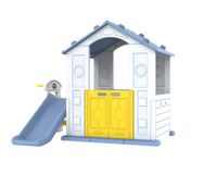 Domek Ogrodowy 3w1 dla dzieci Niebieski Dach + Zjeżdżalnia + Koszykówka