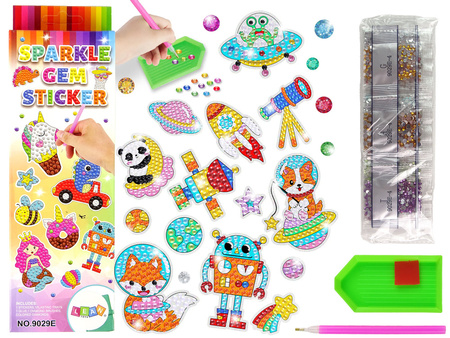 W zestawie znajdziemy różne kolory kryształków, dzięki którym możemy udekorować naklejki. Powierzchnia do przyklejania diamentów pokryta jest warstwą kleju, numerki oznaczone na powierzchni wskażą jakiego koloru użyć. Układaj jeden po drugim i stwórz małe dzieło sztuki!