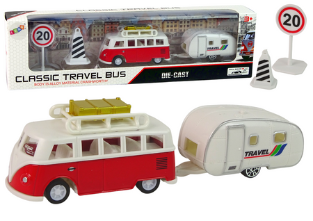Zestaw Pojazdów Czerwony Bus z Przyczepą Campingową