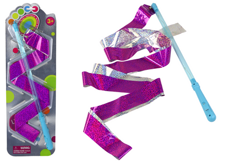 Ta błyszcząca różowa wstęga to nie tylko akcesorium sportowe, ale także instrument do kreowania magicznych chwil na parkiecie. Zamocowana na niebieskim uchwycie wstęga nie tylko prezentuje się efektownie, ale także ma dodatkową funkcję efektów świetlnych, dodając jeszcze więcej magii do występu.