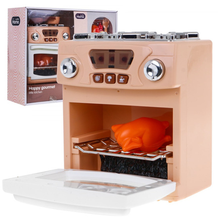 | | Zestaw interaktywna kuchenka z akcesoriami to propozycja dla wszystkich małych kucharzy i kucharek. Zabawka przeznaczona jest dla dzieci już od 18-go miesiąca życia. Kuchenka zasilana jest bateriami typu AA – 3 x 1,5V (brak w zestawie), posiada efekty dźwiękowe i świetlne. Po przekręceniu pokręteł w kuchence słychać odgłos gotowania (prawy palnik) i smażenia (lewy palnik), miga również dioda w piekarniku. 3 przyciski na kuchence (pizza, pieczarka i kurczak) uruchamiają dźwięki i efekty świetlne. Kuchenka posiada otwierany piekarnik. Twoja pociecha będzie mogła upiec kurczaka lub hot doga i podać go na talerzu dołączonym do zestawu. |